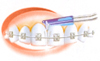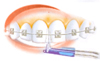 introduza e vibre as cerdas entre o dente e o fio. |