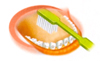os dentes e no lado de dentro dos dentes de trás,
